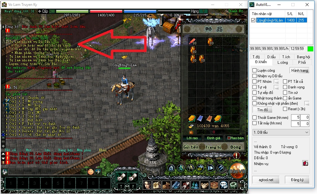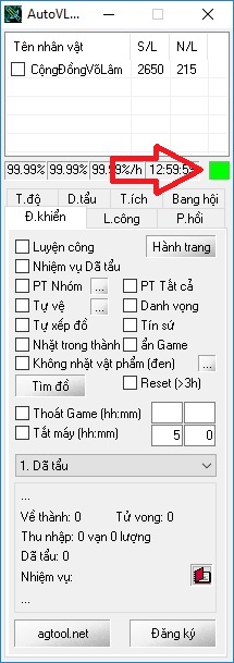 Bước cuối (quan trọng): nếu khi tick vào tên nhân vật trên auto, trong game sẽ xuất hiện 1 loạt thông báo như hình thì bạn đã thành công. Sau này chỉ việc Mở auto như bước 1, không cần phải kích hoạt hay làm gì thêm.