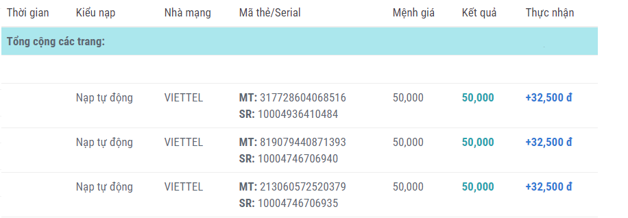Thẻ cào điện thoại sẽ được xử lý tự động, trường hợp bị lỗi mới phải nhờ mình check => chụp ảnh thẻ cào lại rồi nhắn tin vô fanpage.