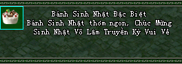 Phần thưởng: điểm danh ở NPC để nhận Bánh Sinh Nhật Đặc Biệt.