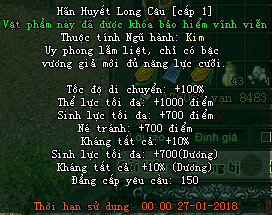Những người chơi không ra đường quậy phá ăn chơi chỉ có game làm bạn thì có thể đến nhận ngay cho mình 01 ngựa Hãn Huyết Long Câu có hạn sử dụng đến hôm đá trận chung kết tức ngày 27/01/2018.